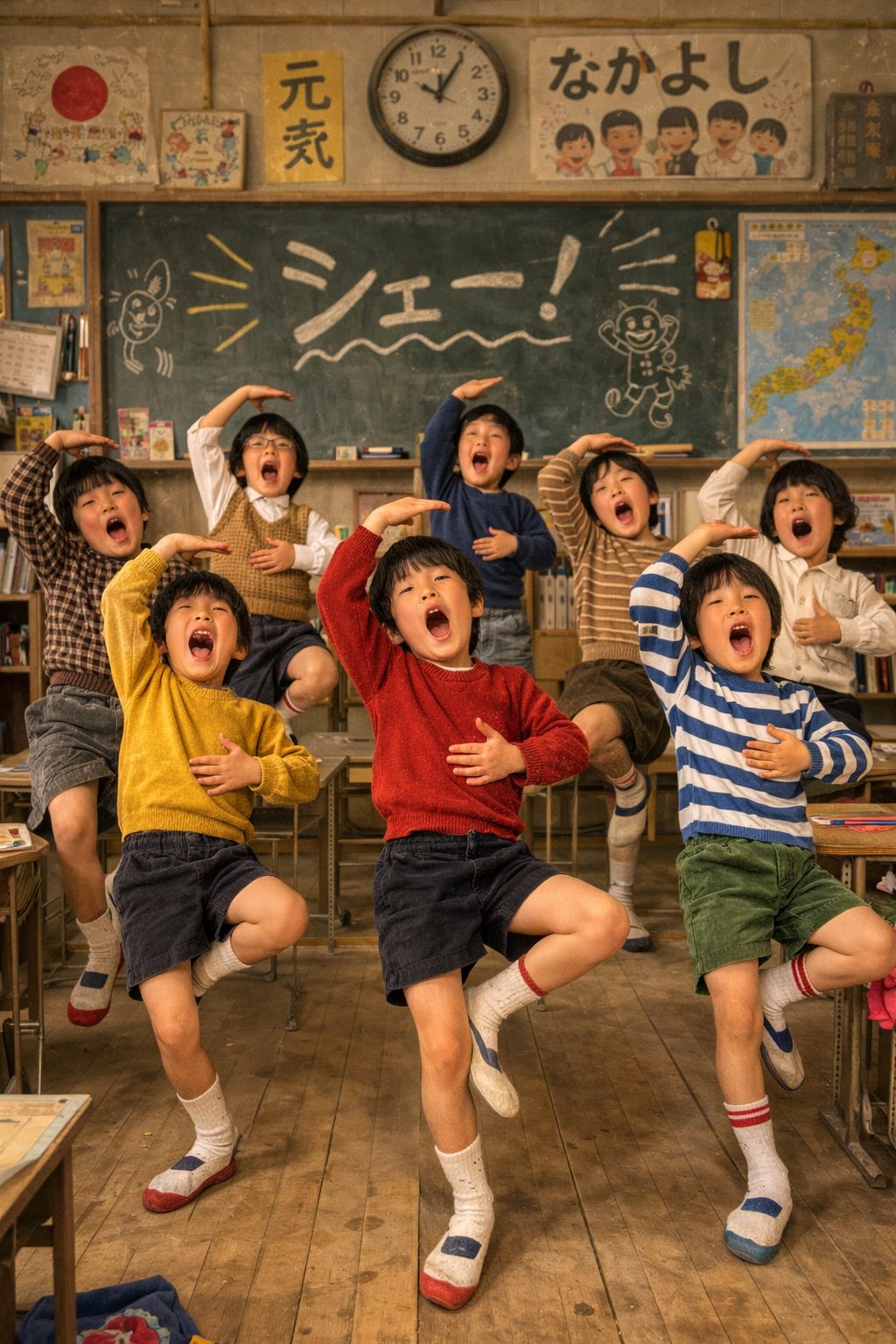 クラスで先生が宿題を出すと「シェー!!」